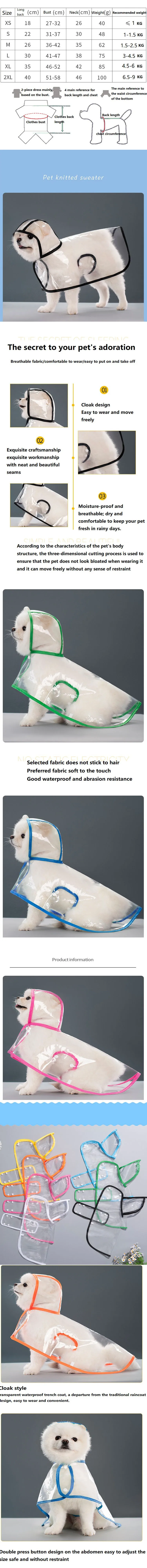 Puppy Raincoat Waterproof Pet Rain Small Medium Dogs Cats Jumpsuit Chihuahua Teddy Hooded Pug Rain Poncho Rainwear GYY01
