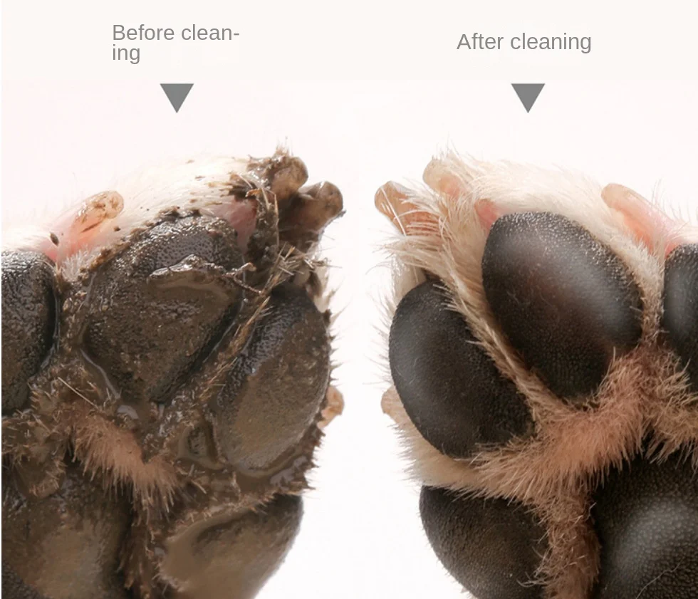 Clever Design:Unique jar cup shape,this dog paw cleaner cup can be detachable. easy to use, more efficient cleaning